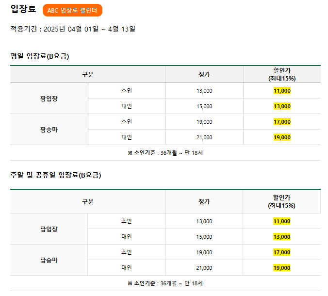 - 🎫 입장료: 성인 15,000원 / 어린이 13,000원 (체험은 별도)